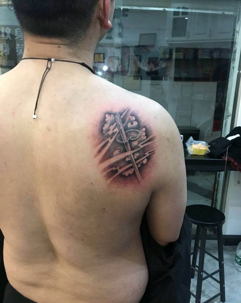 • 纹身吧推荐的披肩图腾半胛纹身图案作品展示