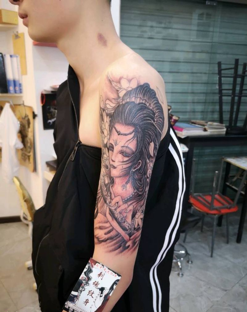 当前位置: 首页 >湖北省十堰市纹身店-刺魂纹身总店纹身图案>虞姬纹身图片_手臂新传统纹身图案