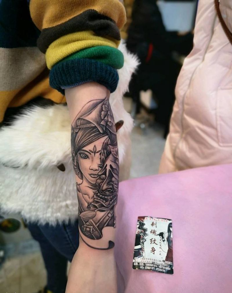 当前位置: 首页 >湖北省十堰市纹身店-刺魂纹身总店纹身图案>艺伎般喏纹身图片_手臂老传统纹身图案