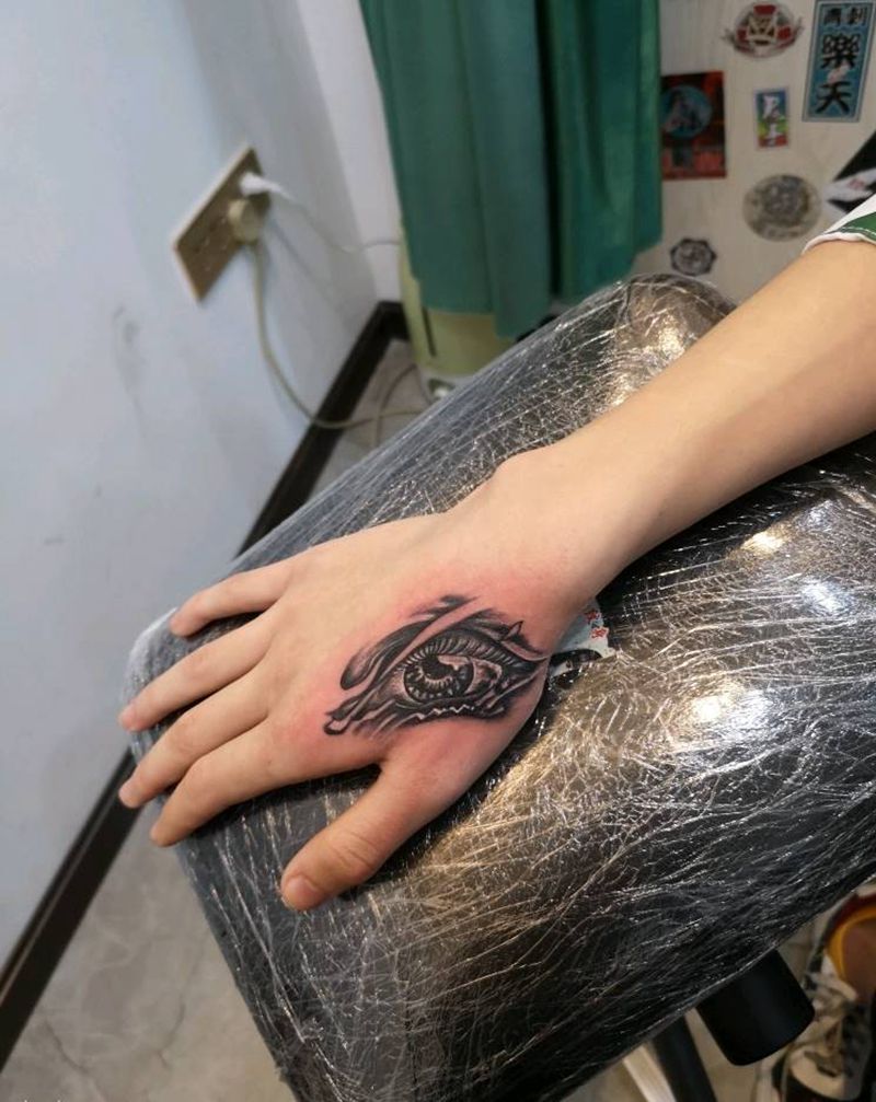 • 手背潮流时尚的玫瑰花眼睛纹身图案