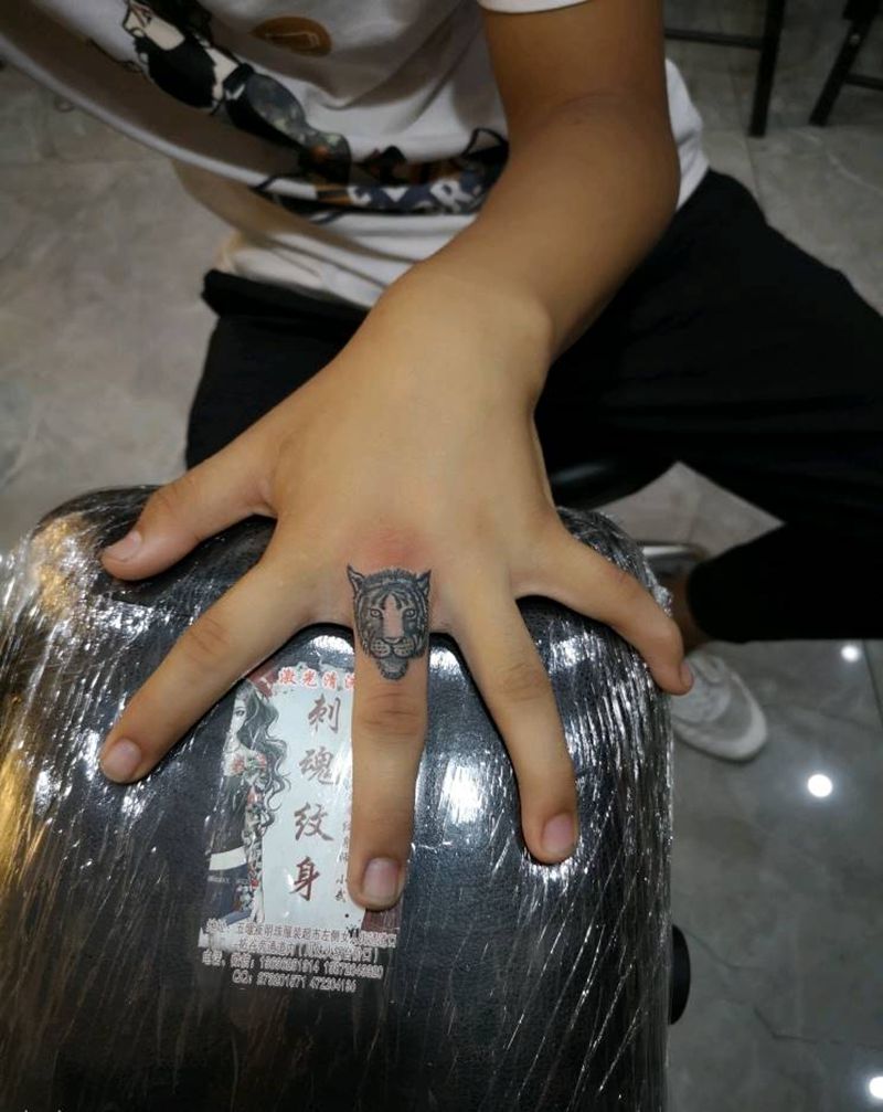 手指小老虎纹身图片_手部老传统纹身图案