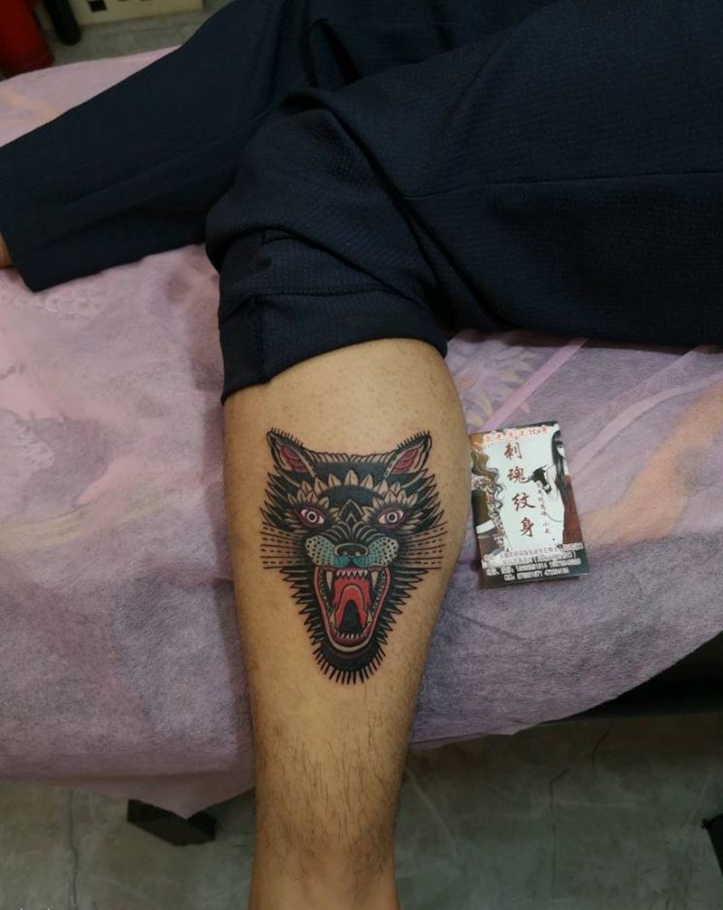 • T网红王老大花腿龙纹身图片_腿部新传统纹身图案
