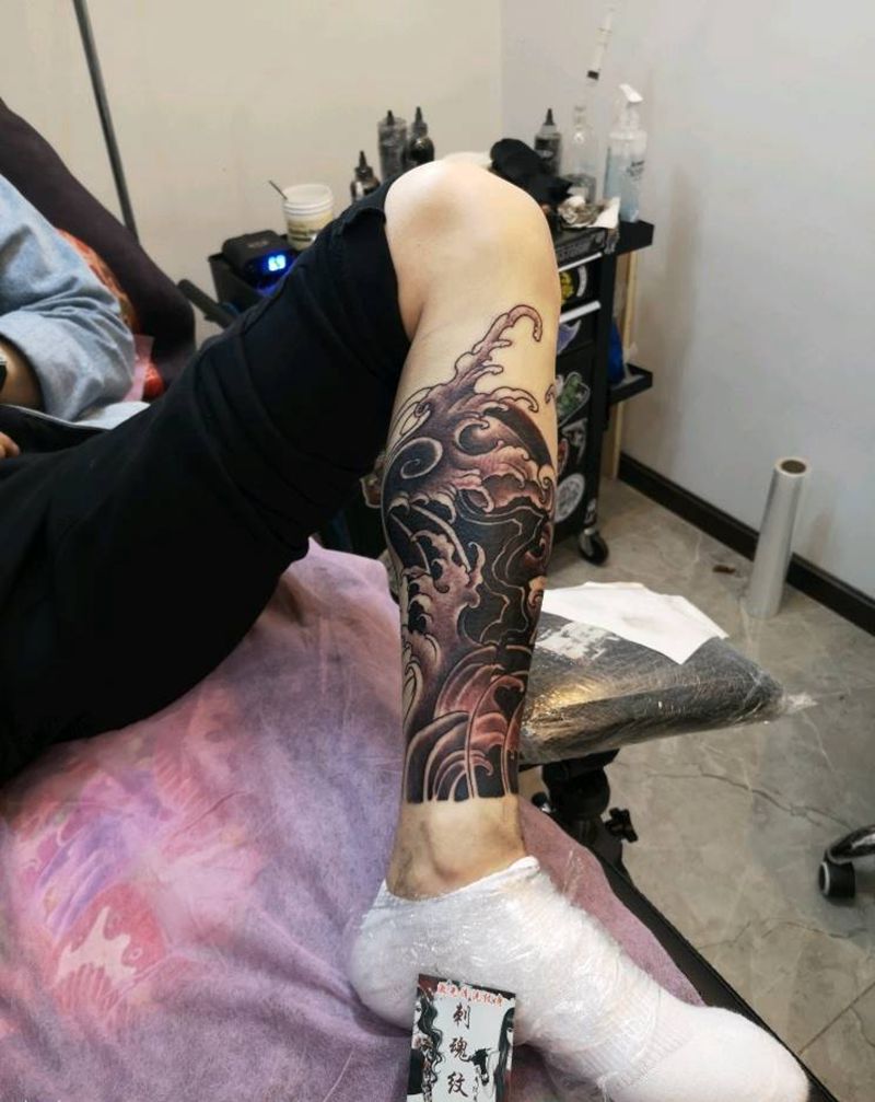 • T网红王老大花腿龙纹身图片_腿部新传统纹身图案