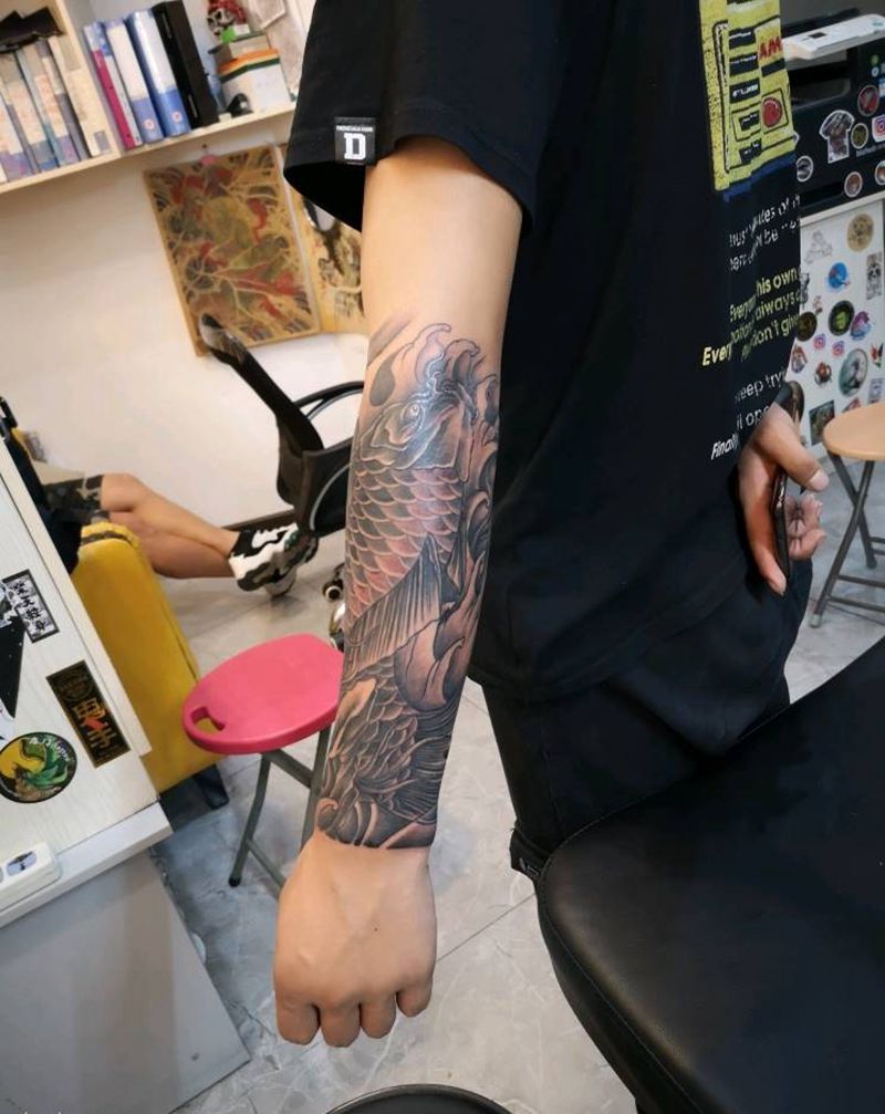 当前位置: 首页 >湖北省十堰市纹身店-刺魂纹身总店纹身图案>小臂锦鲤纹身图片_新传统纹身图案