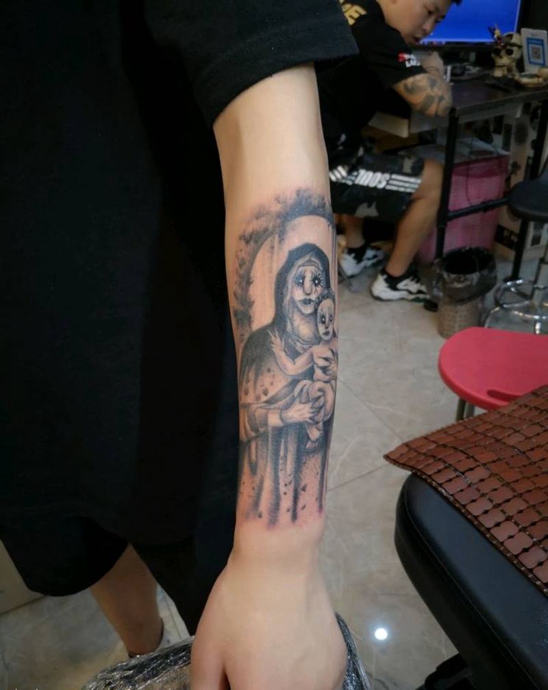 当前位置: 首页 >湖北省十堰市纹身店-刺魂纹身总店纹身图案>小臂暗黑系纹身图片_手臂新传统纹身图案