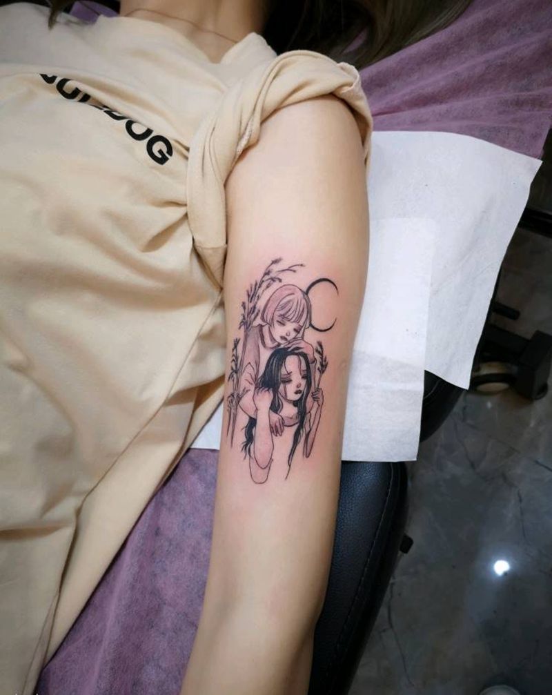 当前位置: 首页 >湖北省十堰市纹身店-刺魂纹身总店纹身图案>小清新人物纹身图片_手臂几何人物小清新纹身图案