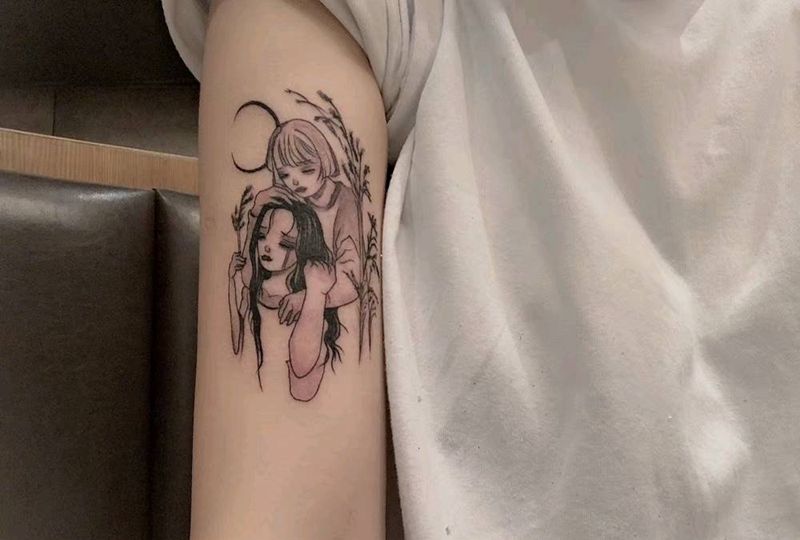 当前位置: 首页 >湖北省十堰市纹身店-刺魂纹身总店纹身图案>小清新人物纹身图片_手臂几何人物小清新纹身图案