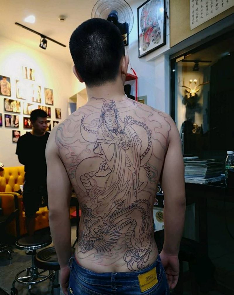 当前位置: 首页 >湖北省十堰市纹身店-刺魂纹身总店纹身图案>大满背纹身图片_背部新传统纹身图案