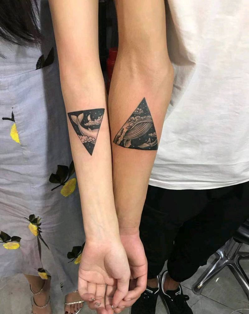鲸鱼纹身图片_手臂点刺几何纹身图案