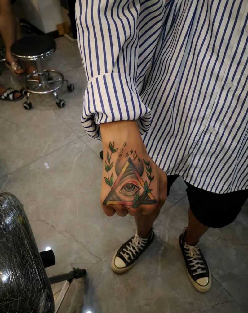 当前位置: 首页 >湖北省十堰市纹身店-刺魂纹身总店纹身图案>手背上帝之眼纹身图片_手部New School纹身图案