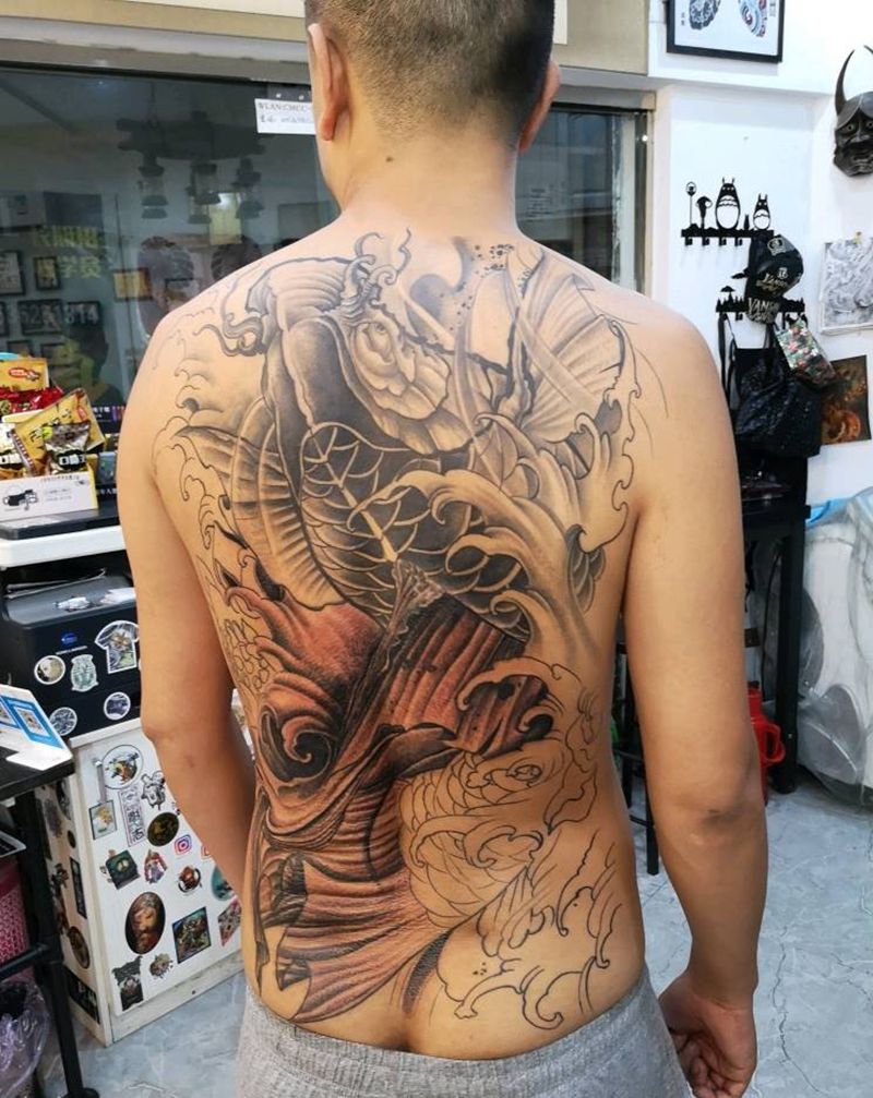 • T云龙九郎纹身图片_背部老传统云龙九郎纹身图案