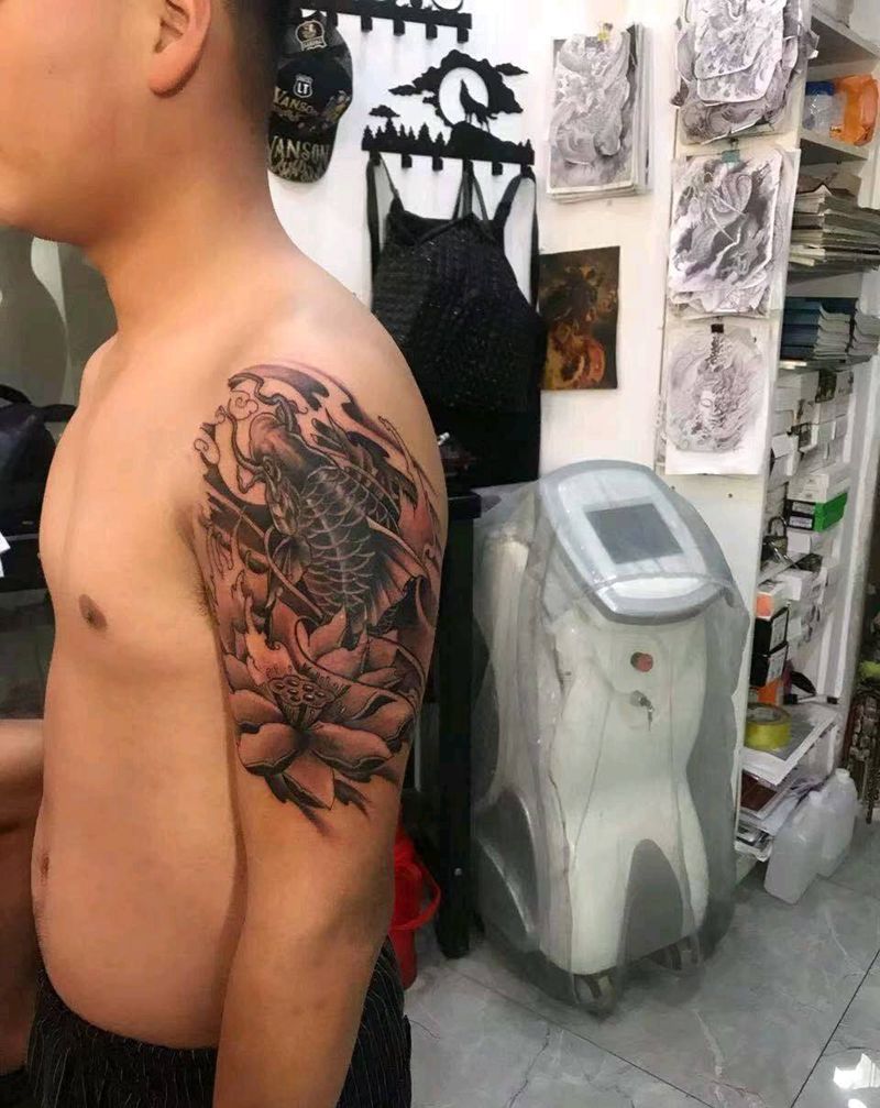 当前位置: 首页 >湖北省十堰市纹身店-刺魂纹身总店纹身图案>大臂锦鲤,遮盖旧纹身纹身图片_手臂新传统纹身图案