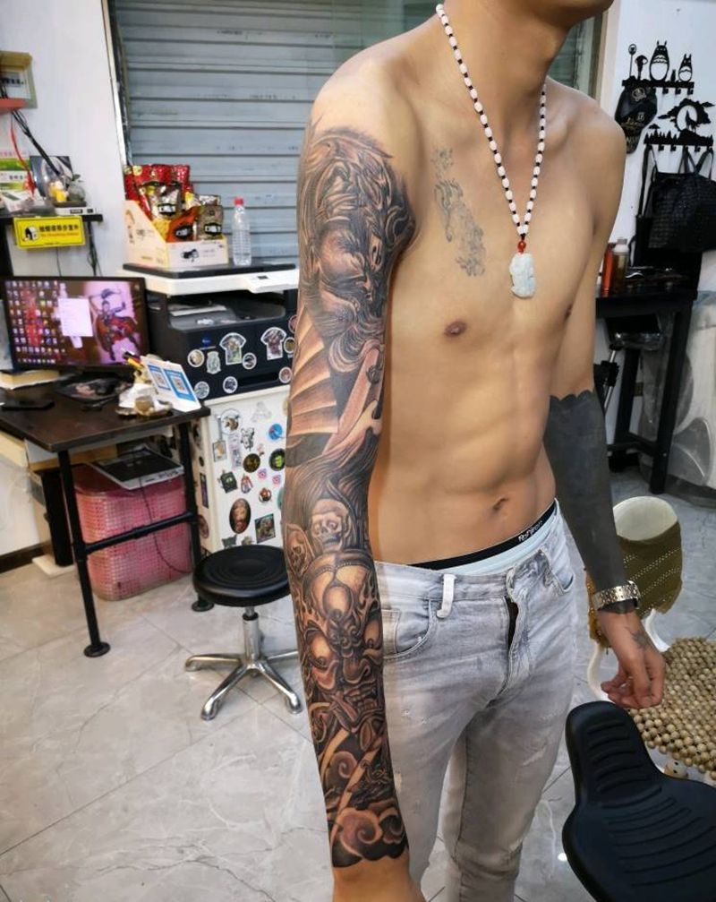 当前位置: 首页 >湖北省十堰市纹身店-刺魂纹身总店纹身图案>钟馗,天王大花臂纹身图片_手臂老传统纹身图案