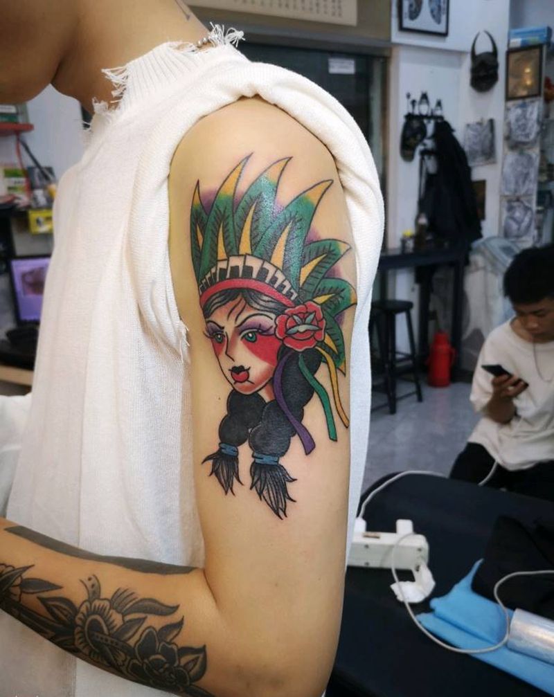 • 纹身吧推荐的披肩图腾半胛纹身图案作品展示