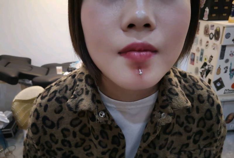 穿孔唇钉纹身图片_颈部纹身图案