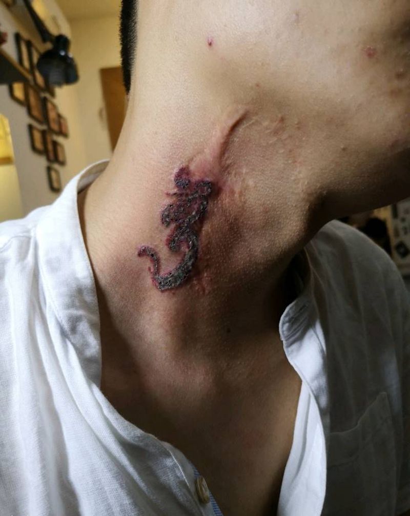 祛除旧纹身 老式眉毛纹身图片_颈部图腾纹身图案
