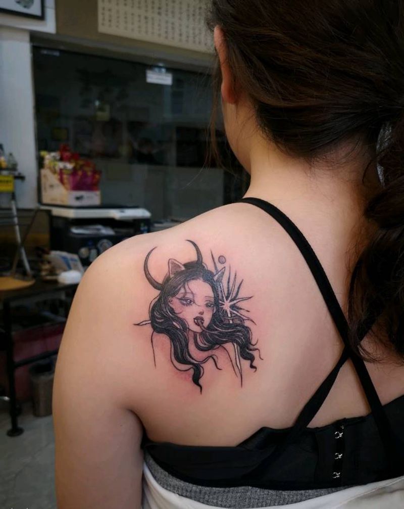 当前位置: 首页 >湖北省十堰市纹身店-刺魂纹身总店纹身图案>小清新人物纹身图片_肩部新传统纹身图案