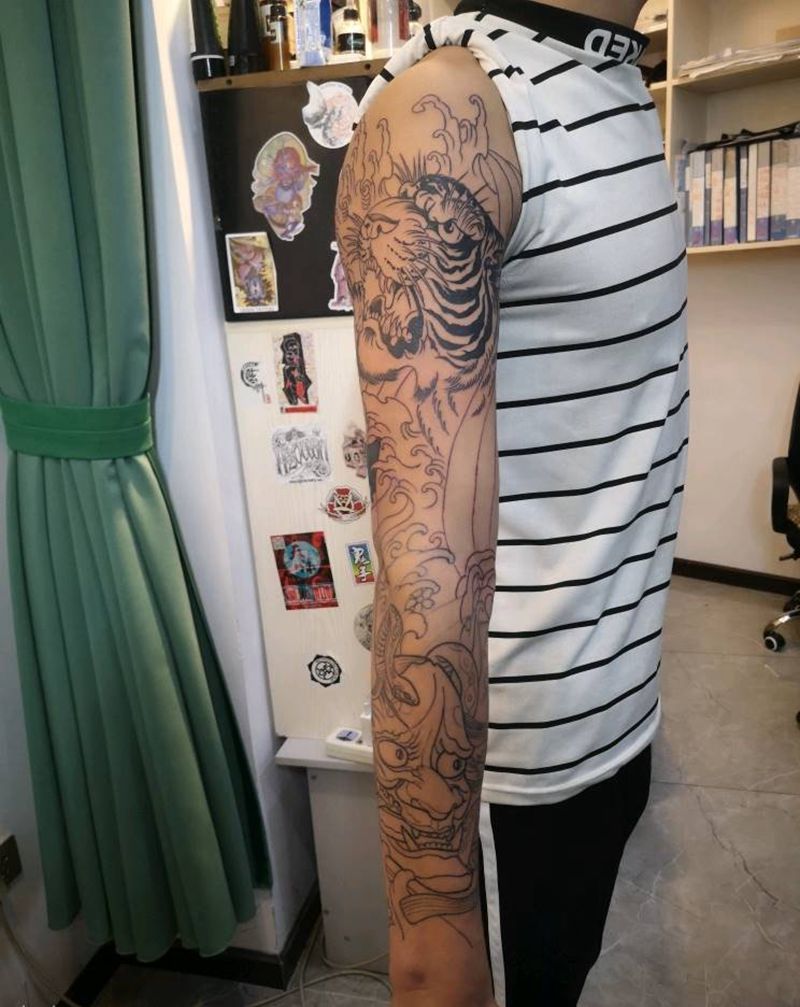 当前位置: 首页 >湖北省十堰市纹身店-刺魂纹身总店纹身图案>花臂线条纹身图片_手臂新传统纹身图案
