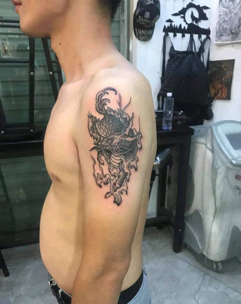 当前位置: 首页 >湖北省十堰市纹身店-刺魂纹身总店纹身图案>近期作品集纹身图片_肩部新传统纹身图案