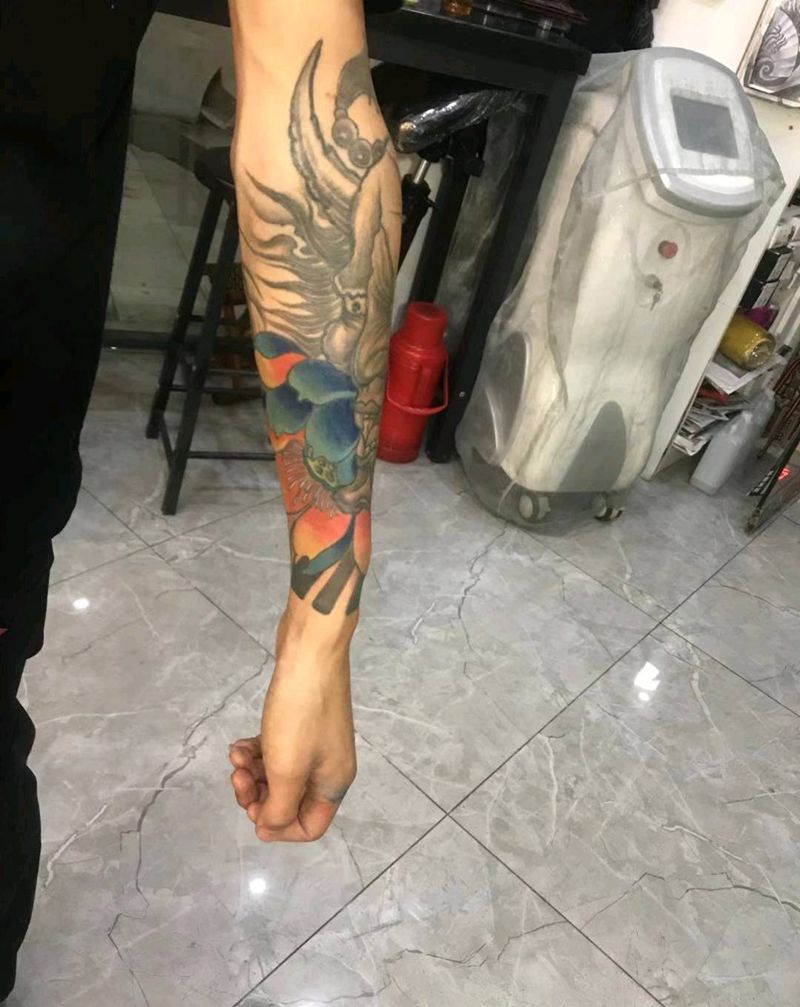 当前位置: 首页 >湖北省十堰市纹身店-刺魂纹身总店纹身图案>近期作品集纹身图片_手臂新传统纹身图案