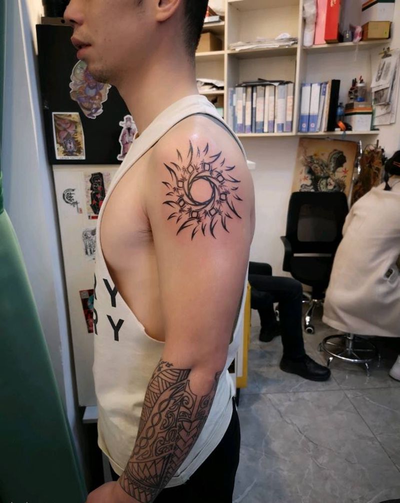 • 纹身吧推荐的披肩图腾半胛纹身图案作品展示