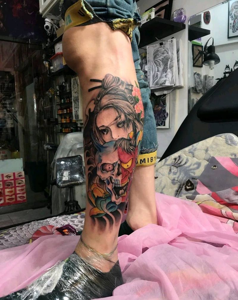 • T网红王老大花腿龙纹身图片_腿部新传统纹身图案