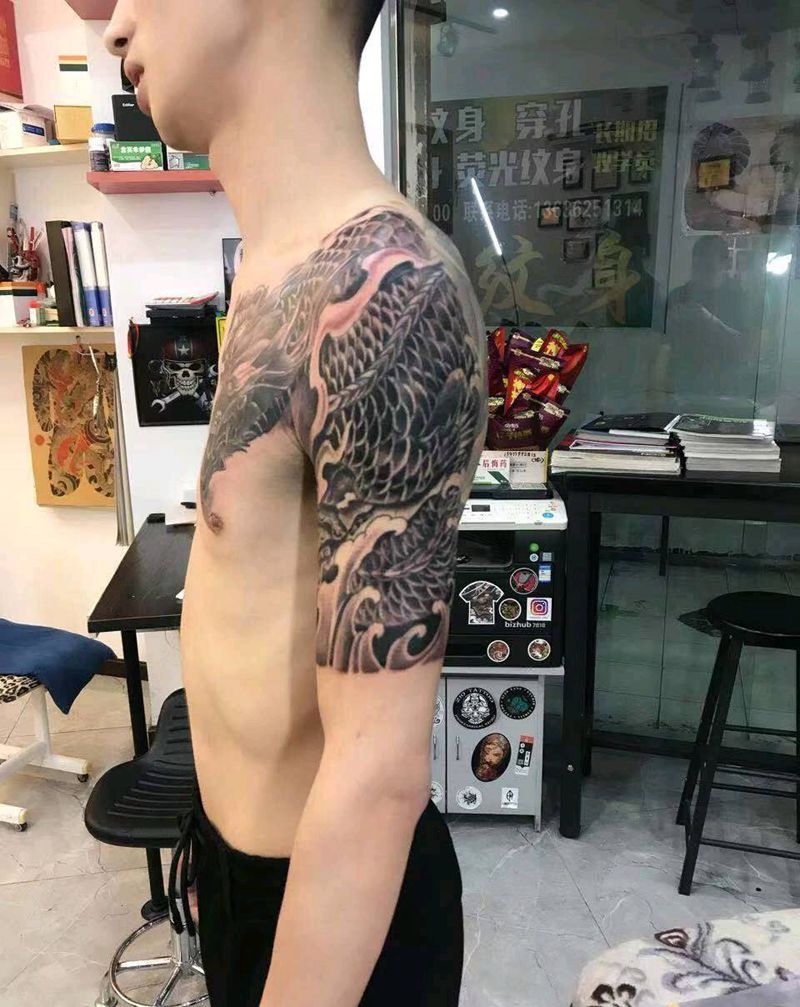 • 纹身吧推荐的披肩图腾半胛纹身图案作品展示