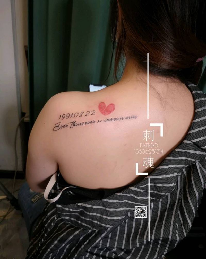 情侣款指纹爱心纹身图片_肩部纹身图案