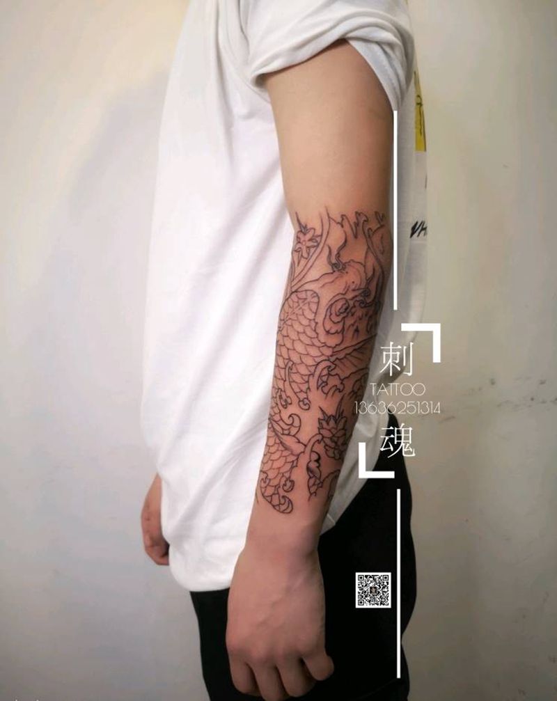 • T网红王老大花腿龙纹身图片_腿部新传统纹身图案