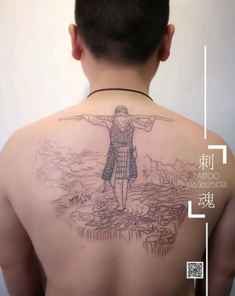 当前位置: 首页 >湖北省十堰市纹身店-刺魂纹身总店纹身图案>至尊宝线条纹身图片_背部新传统纹身图案