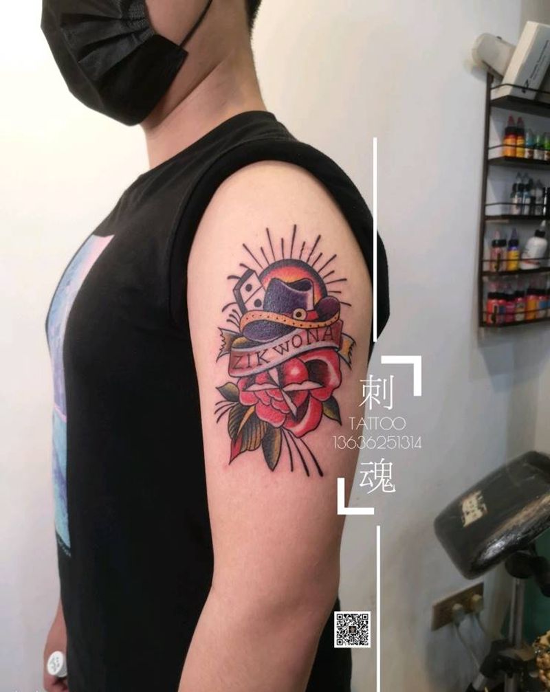 当前位置: 首页 >湖北省十堰市纹身店-刺魂纹身总店纹身图案>思古图一个纹身图片_手臂Old School纹身图案
