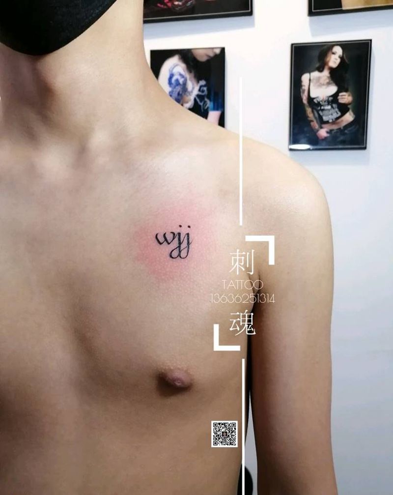 小清新字母纹身图片_胸部纹身图案