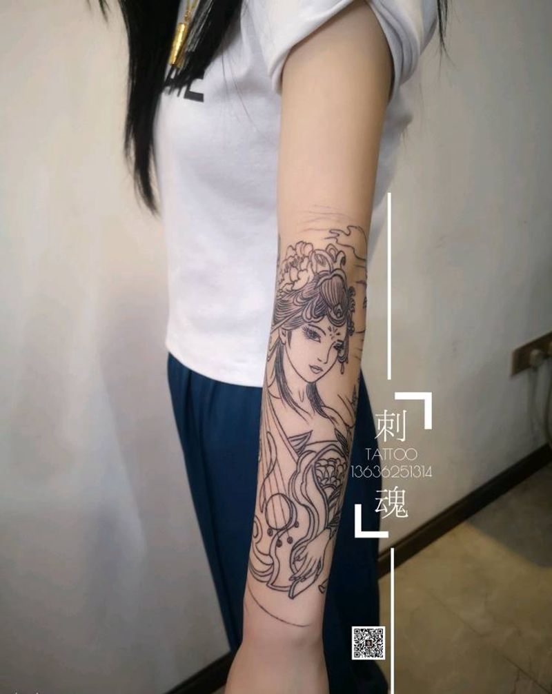 小臂艺妓纹身图片_手臂新传统几何纹身图案