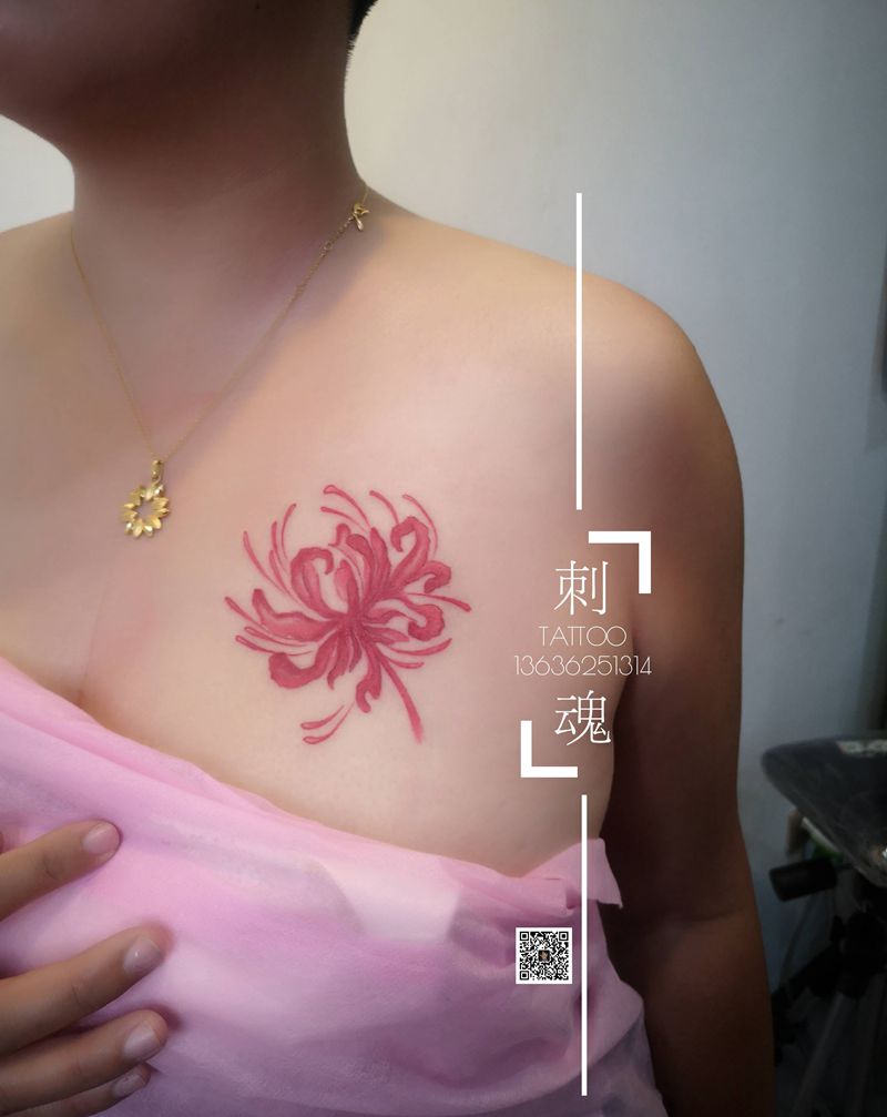 彼岸花纹身图片_胸部水彩纹身图案