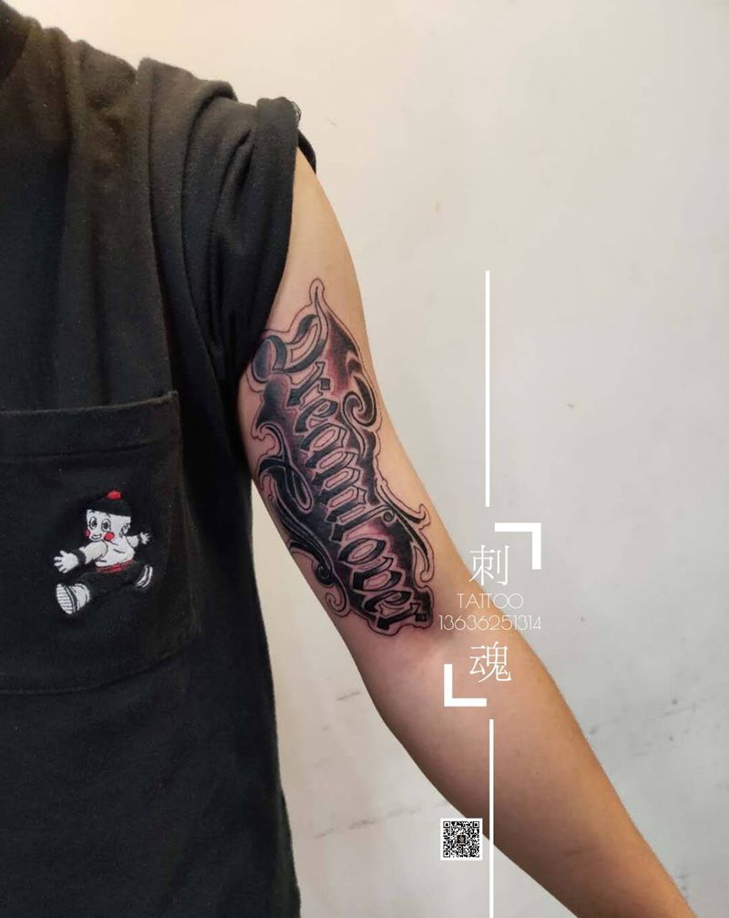 当前位置: 首页 >湖北省十堰市纹身店-刺魂纹身总店纹身图案>给小GG设计的花体字,遮盖旧纹纹身图片_手臂花体字纹身图案