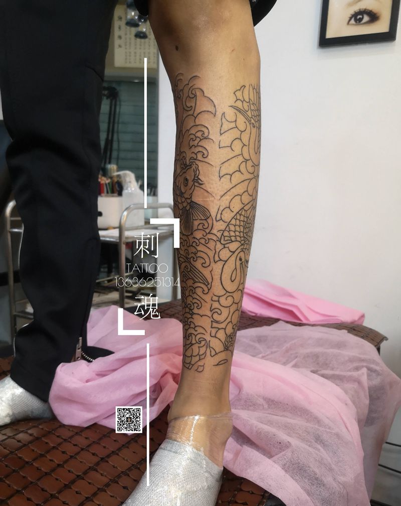 • T网红王老大花腿龙纹身图片_腿部新传统纹身图案