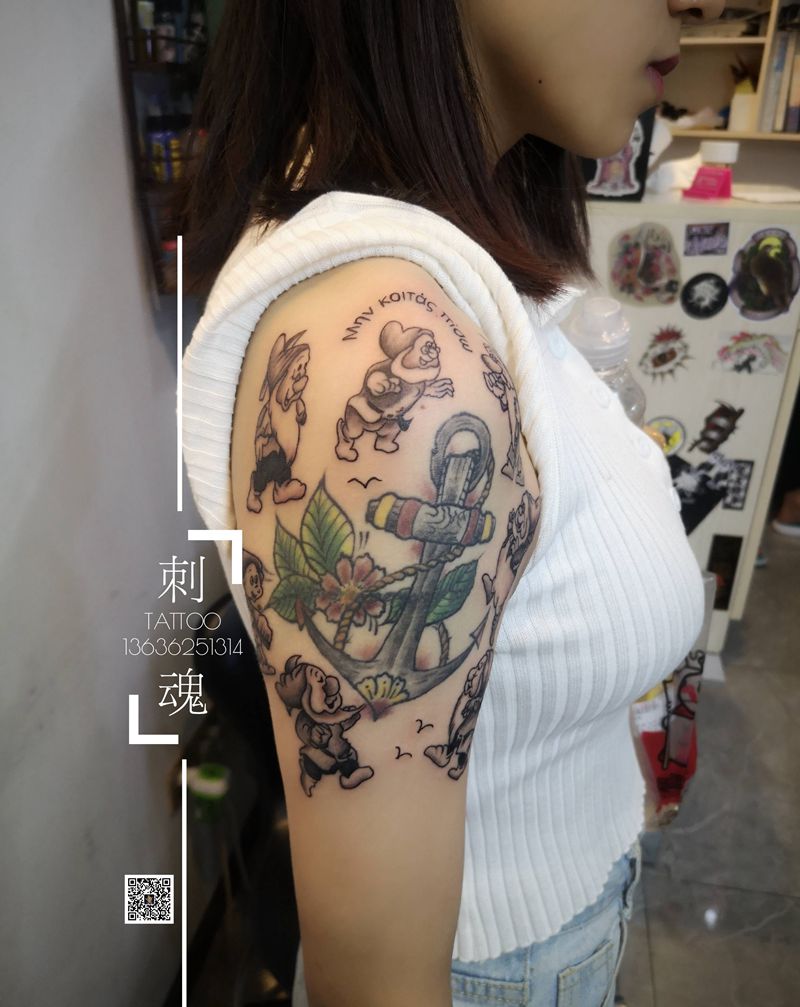 当前位置: 首页 >湖北省十堰市纹身店-刺魂纹身总店纹身图案>七个小矮人纹身图片_手臂新传统纹身图案