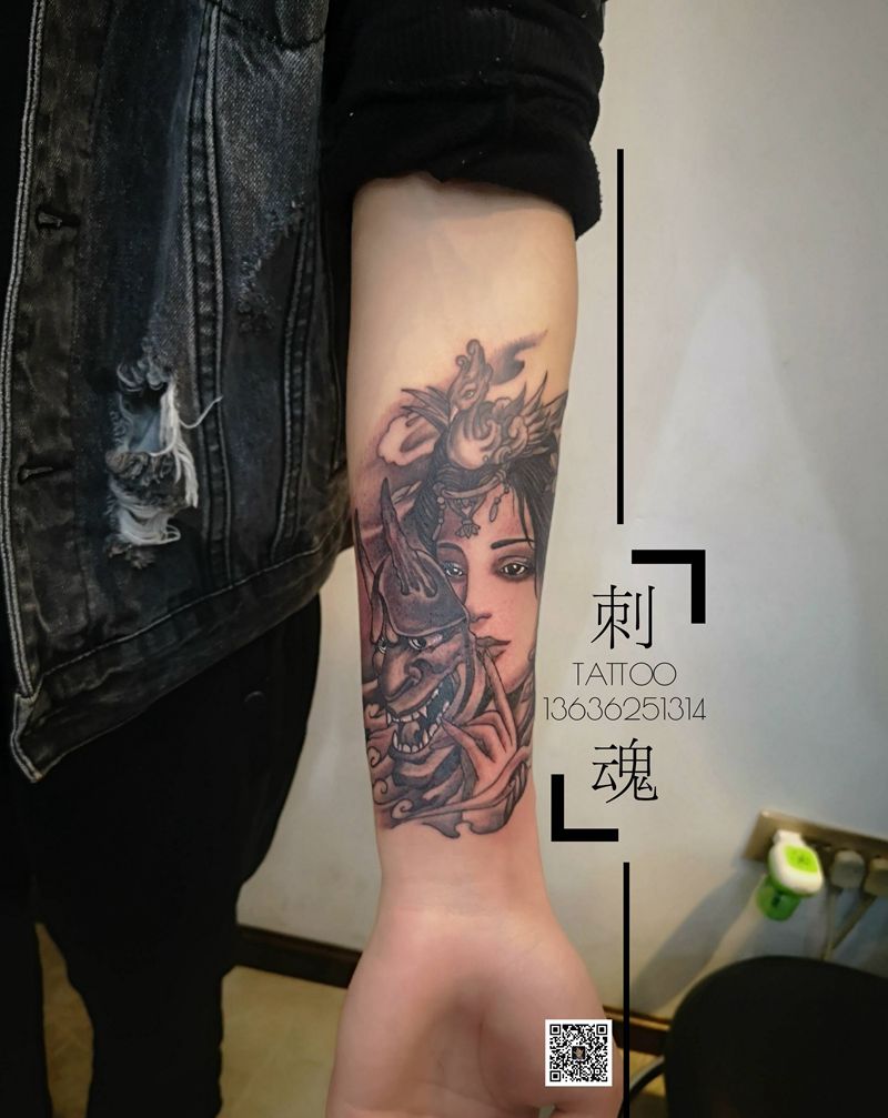 当前位置: 首页 >湖北省十堰市纹身店-刺魂纹身总店纹身图案>小臂艺妓遮盖疤痕纹身图片_手臂新传统纹身图案