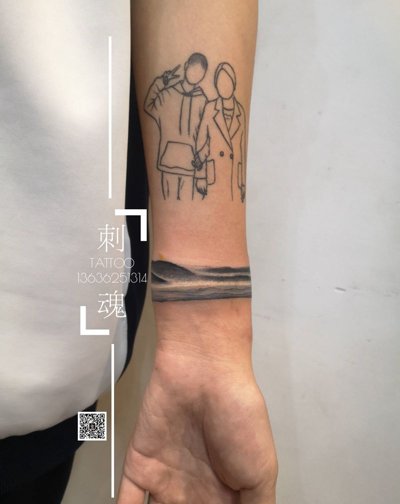 水墨手环纹身图片_手臂水墨纹身图案
