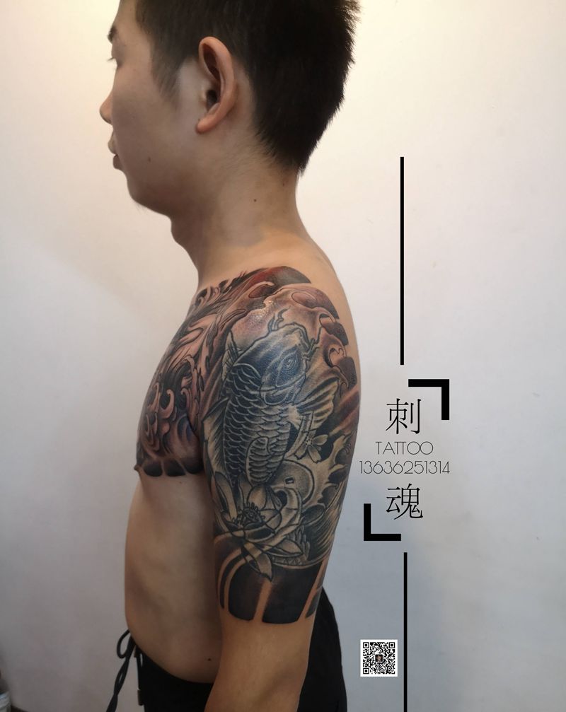 当前位置: 首页 >湖北省十堰市纹身店-刺魂纹身总店纹身图案>般喏锦鲤半甲纹身图片_手臂新传统纹身图案