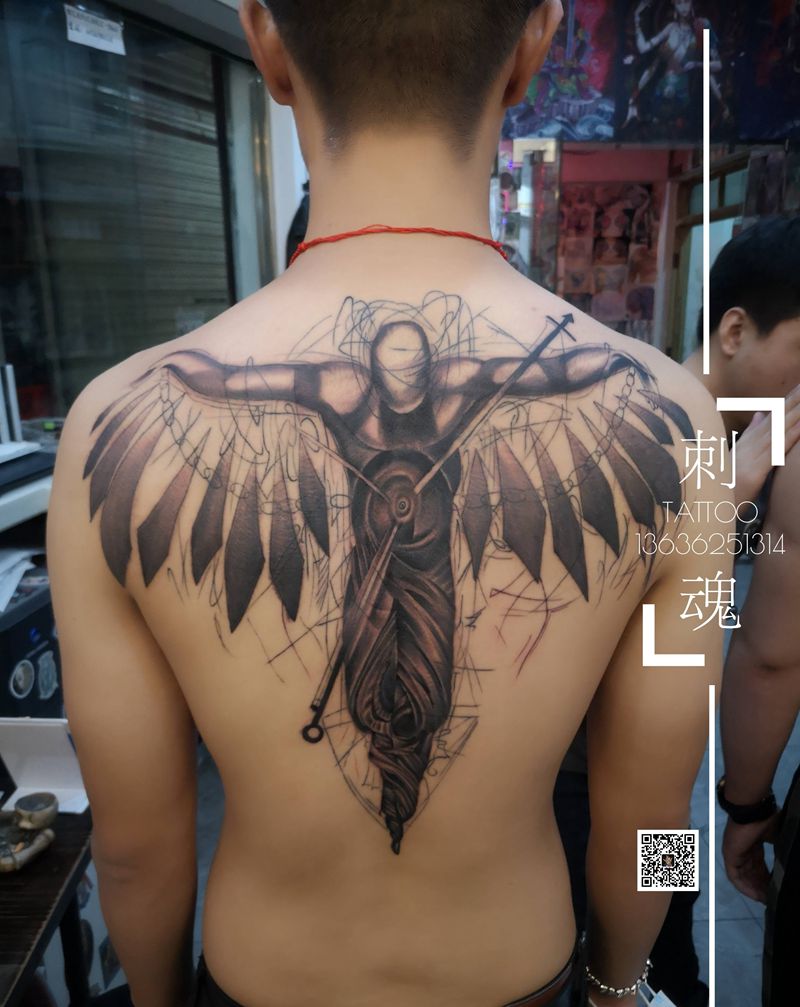 当前位置: 首页 >湖北省十堰市纹身店-刺魂纹身总店纹身图案>暗黑天使纹身图片_背部几何水墨纹身图案