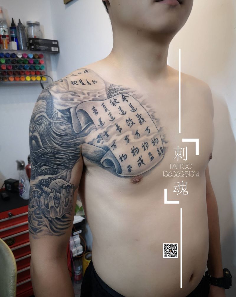 当前位置: 首页 >湖北省十堰市纹身店-刺魂纹身总店纹身图案>半甲恢复后纹身图片_胸部新传统纹身图案