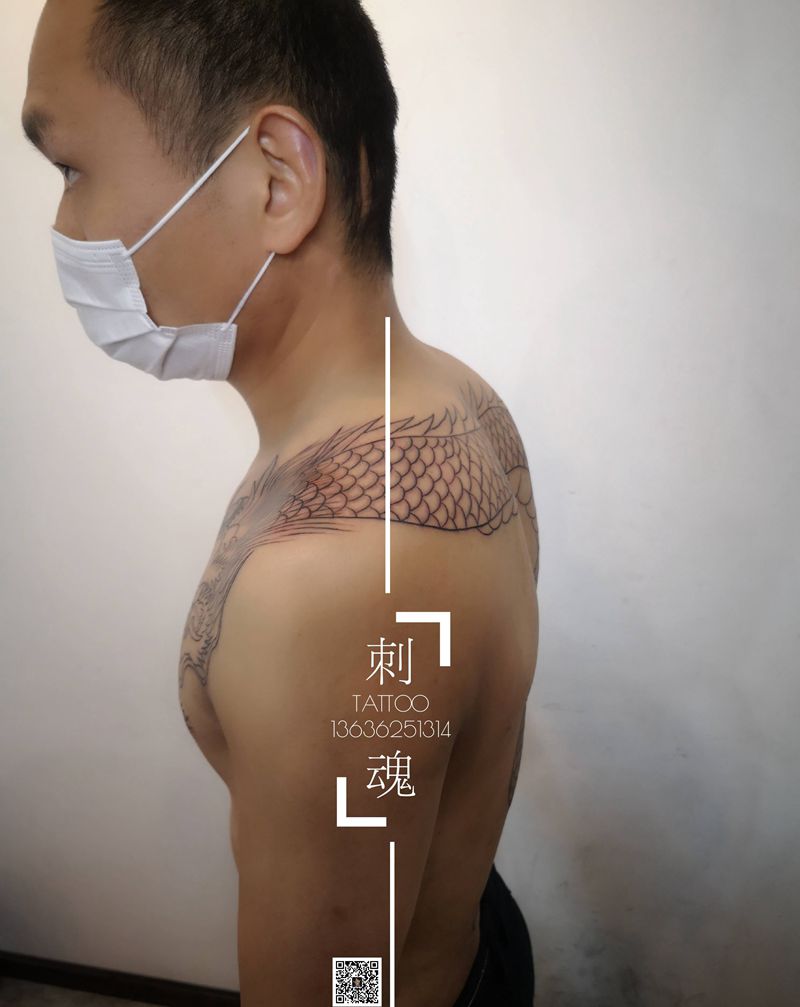 当前位置: 首页 >湖北省十堰市纹身店-刺魂纹身总店纹身图案>过肩过背龙纹身图片_背部几何新传统纹身图案