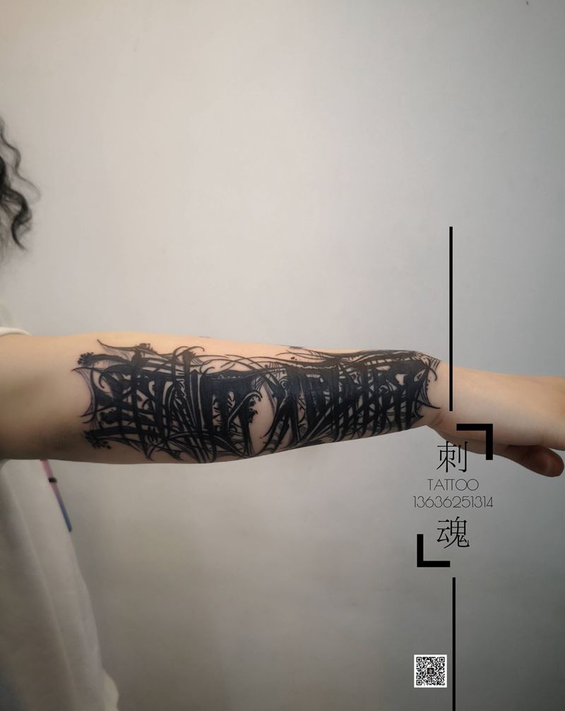 当前位置: 首页 >湖北省十堰市纹身店-刺魂纹身总店纹身图案>暗黑花体字纹身图片_手臂图腾花体字纹身图案