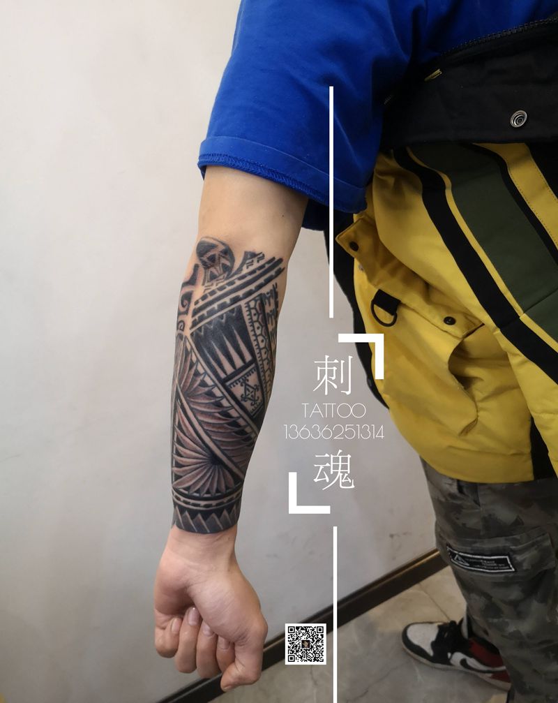当前位置: 首页 >湖北省十堰市纹身店-刺魂纹身总店纹身图案>小臂玛雅图腾纹身图片_手臂图腾纹身图案