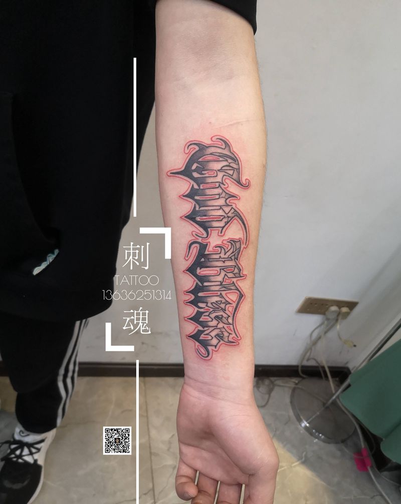 当前位置: 首页 >湖北省十堰市纹身店-刺魂纹身总店纹身图案>花体字纹身图片_手臂花体字纹身图案