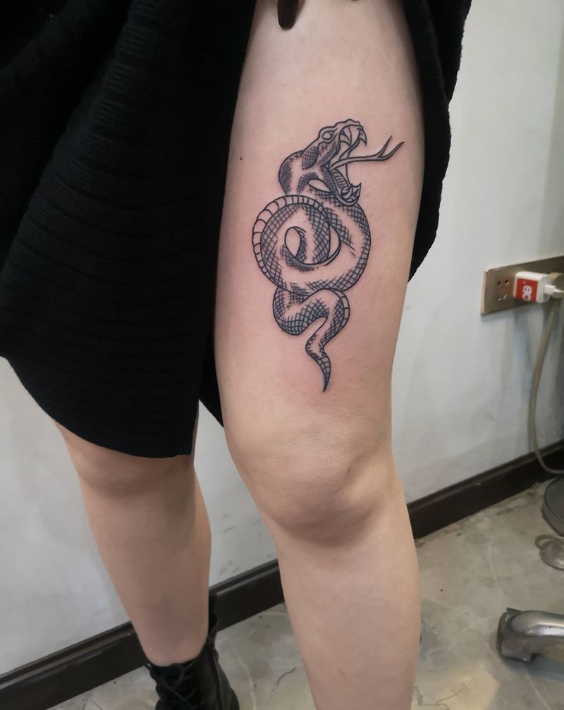 • T网红王老大花腿龙纹身图片_腿部新传统纹身图案