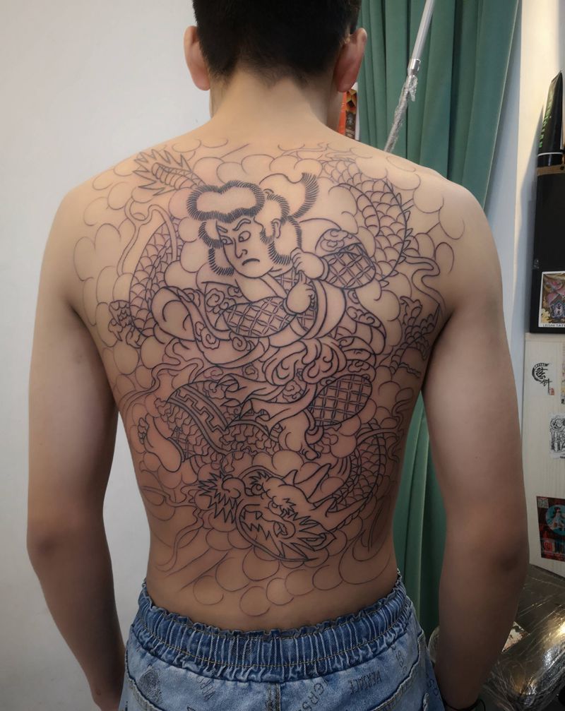 • T云龙九郎纹身图片_背部老传统云龙九郎纹身图案
