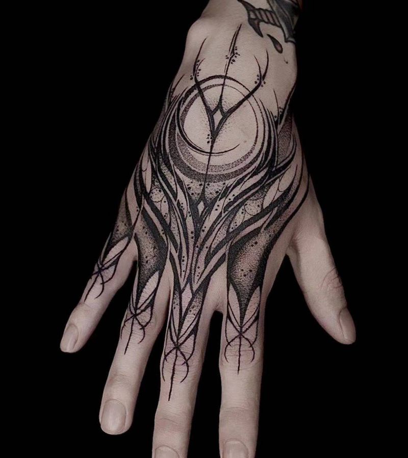 • 手背潮流时尚的玫瑰花眼睛纹身图案