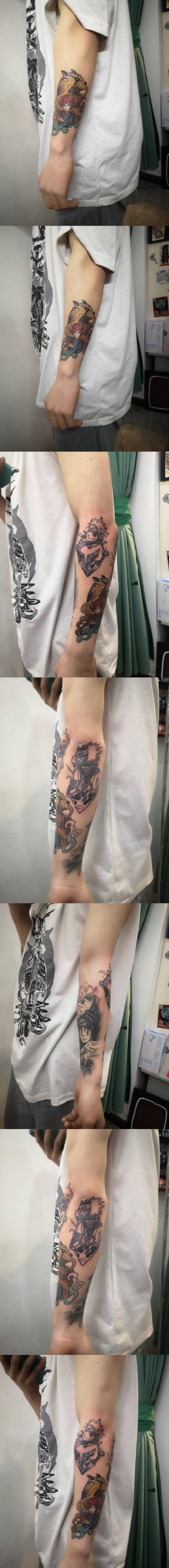 当前位置: 首页 >湖北省十堰市纹身店-刺魂纹身总店纹身图案>近期作品纹身图片_手臂新传统纹身图案
